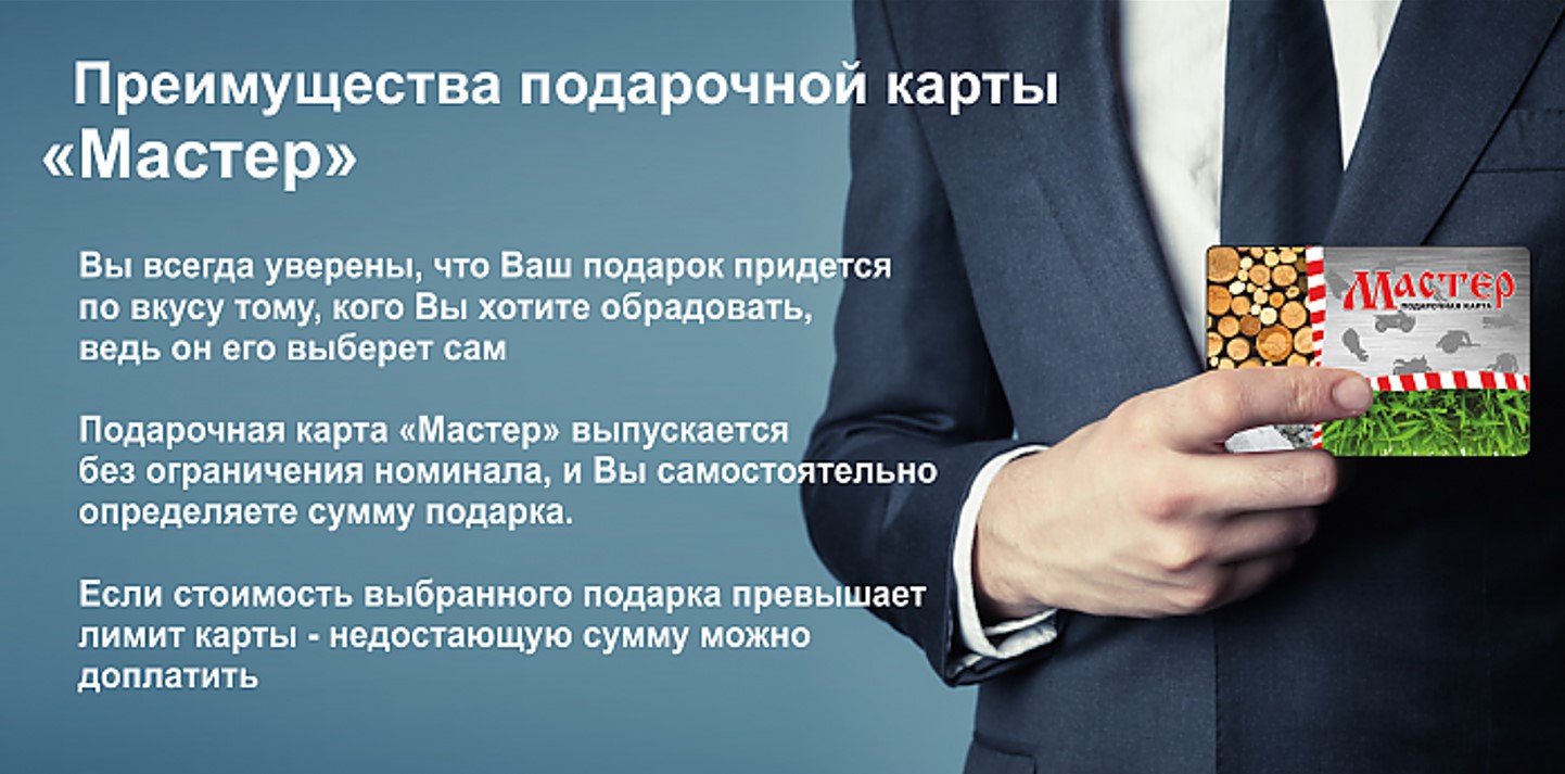 Подарочная карта на любую сумму, приобретается в розничных магазинах торговой сети «Мастер».