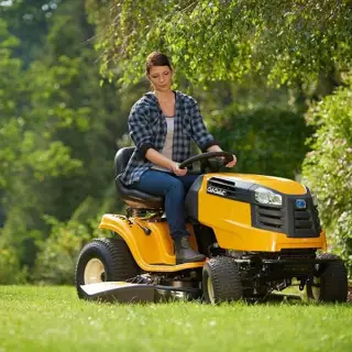 CUB CADET LT2 NR92: Мощность 12,7 л.с., ширина захвата 92 см, оснащен гидростатической трансмиссией и травосборником объемом 240 литров.